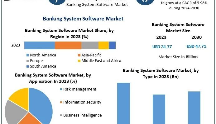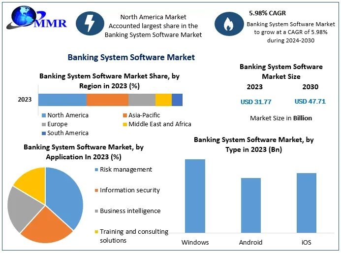 Anticipated Growth in Revenue: The Banking System Software Market size is expected to reach US$ 47.71 Bn in year 2030, at a CAGR of 5.98% during the forecast period.