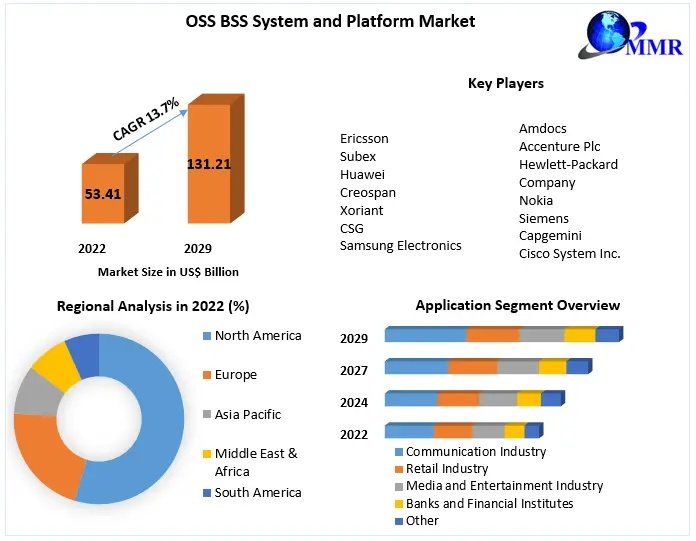 The OSS BSS System and Platform Market was valued at approximately USD 53.41 billion in 2022 and is projected to reach nearly USD 131.21 billion by 2029, expanding at a CAGR of 13.7% during the forecast period (2023–2029). Growth is primarily driven by increasing telecom infrastructure modernization, adoption of convergent billing systems, and rising demand for digital service delivery platforms worldwide. 📊